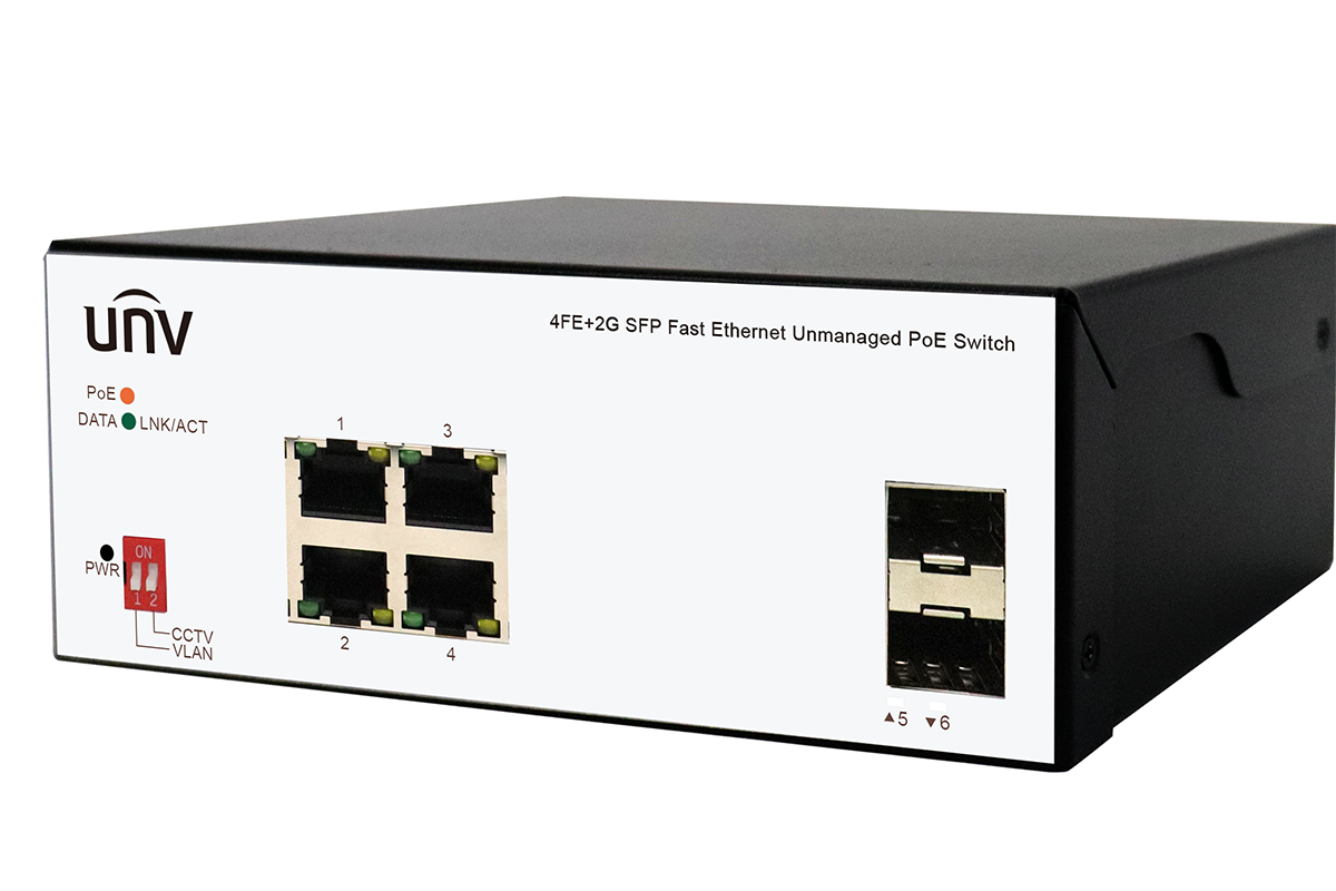 4 PoE პორტიანი სვიჩი 2 გიგაბიტი SFP აპლინკით (კვების ბლოკი)