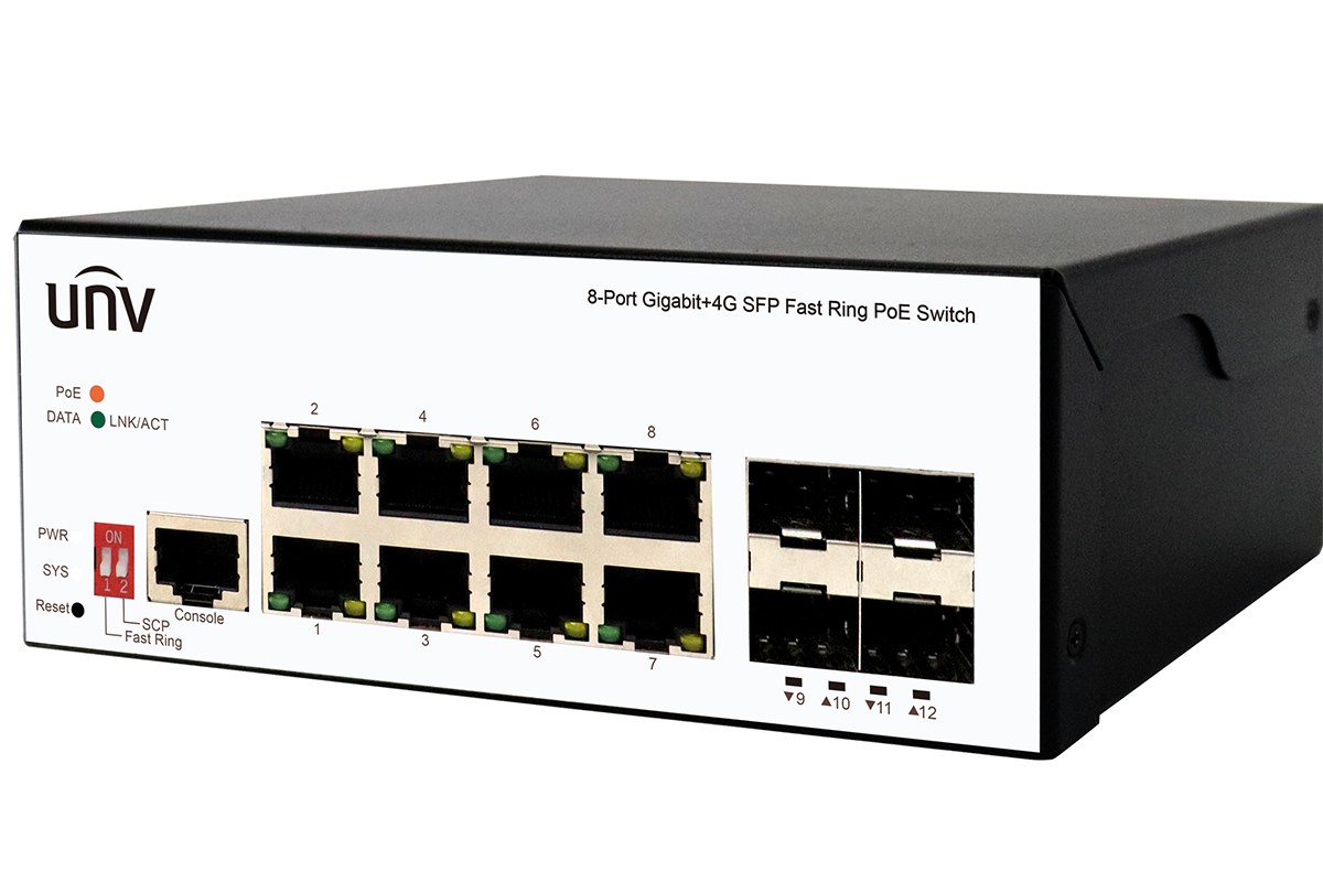 8 PoE პორტიანი გიგაბიტიანი სვიჩი 4 გიგაბიტი SFP აპლინკით (კვების ბლოკით))